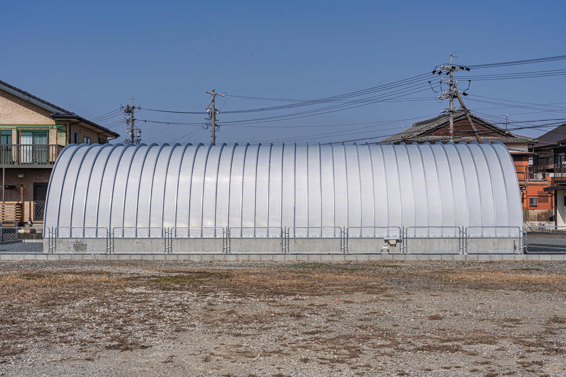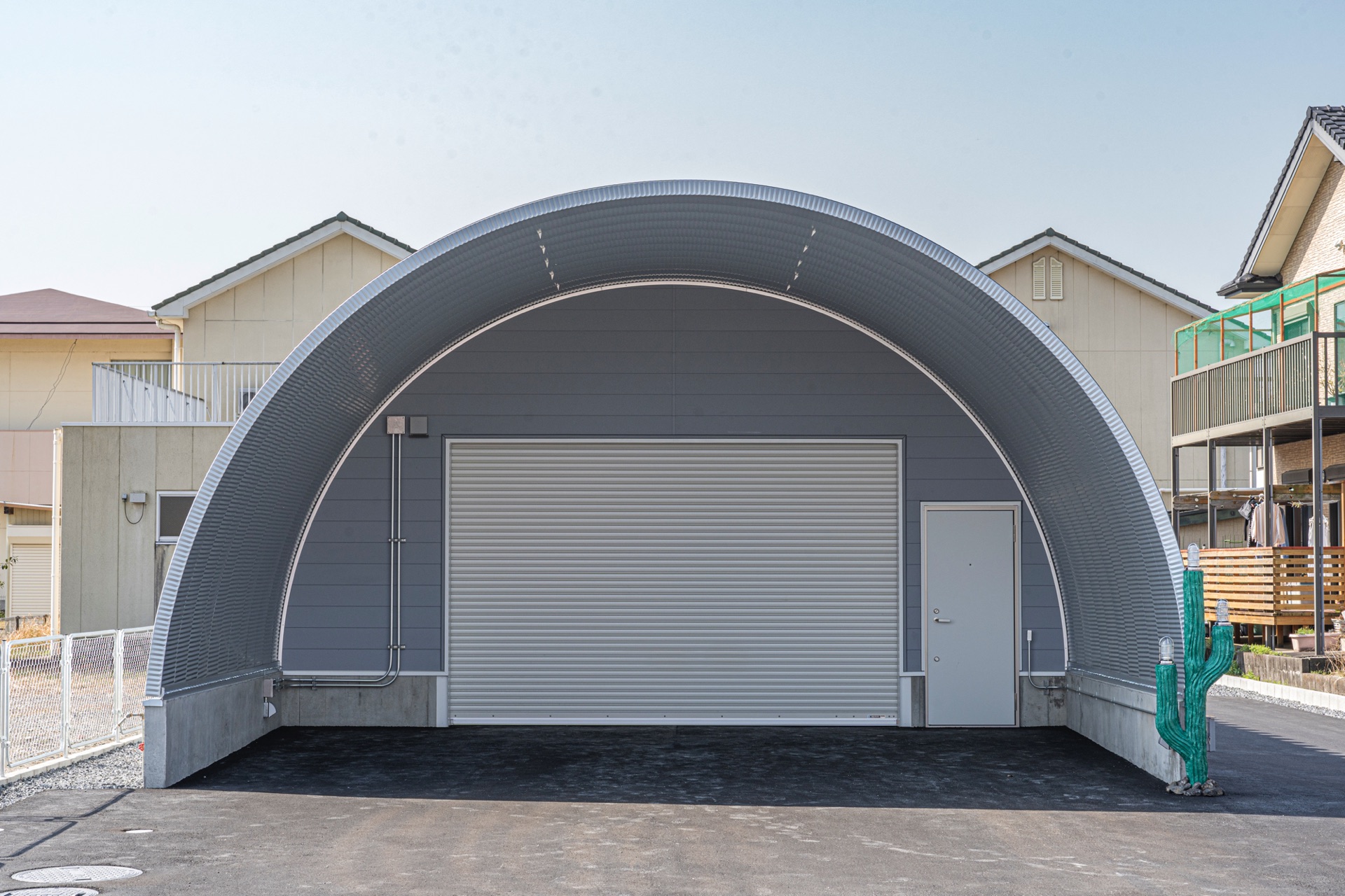 間口7.0m 奥行16m 庇奥行5.6m スチールアーチを施工しました。