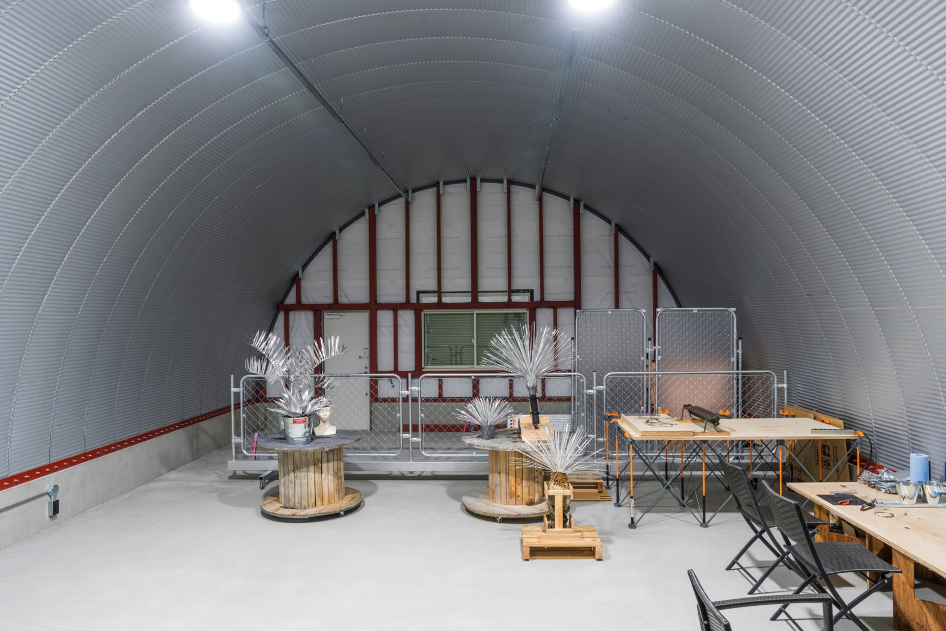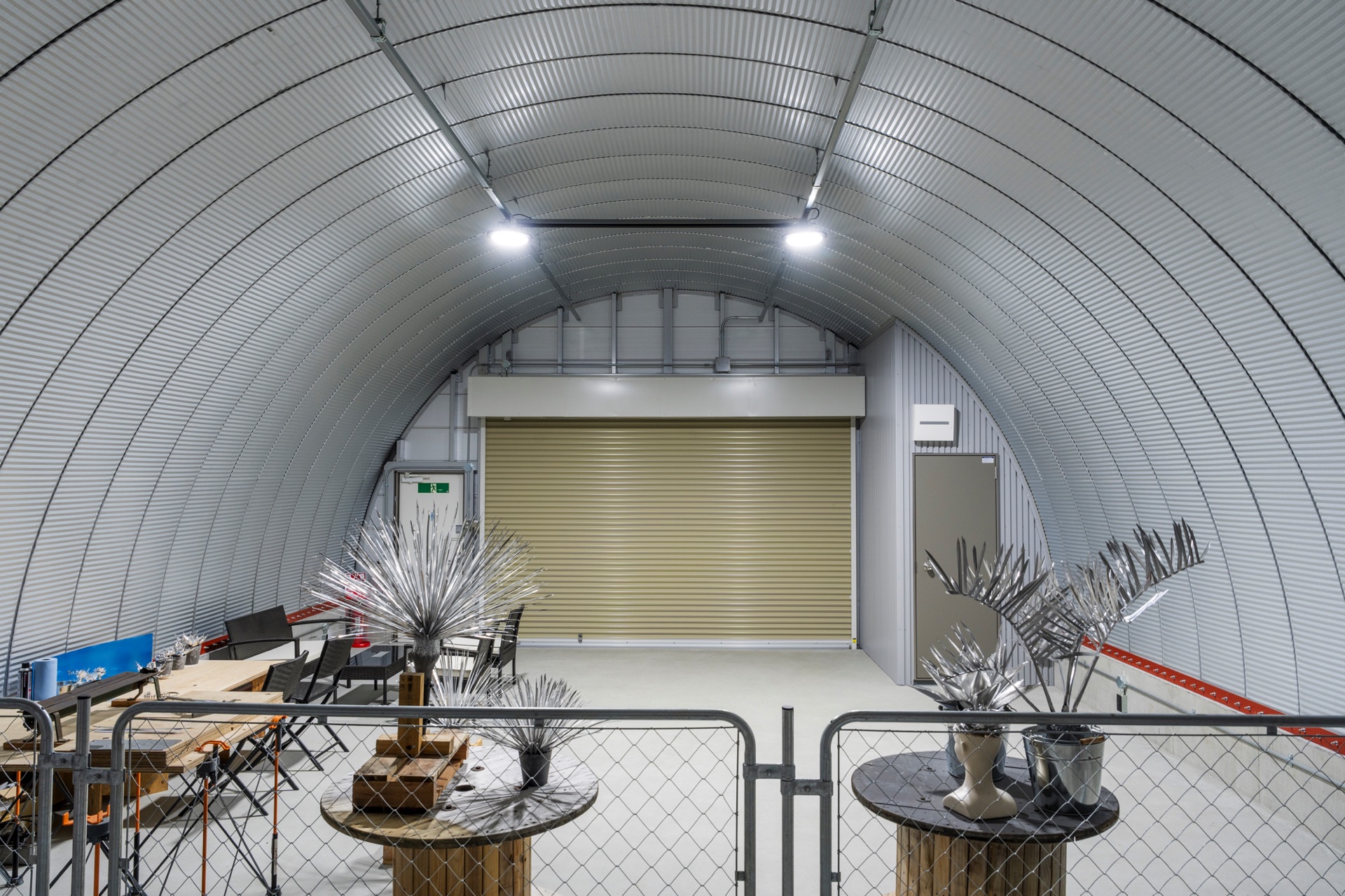 柱がない大空間で、スチールアーチならではの空間となっております。