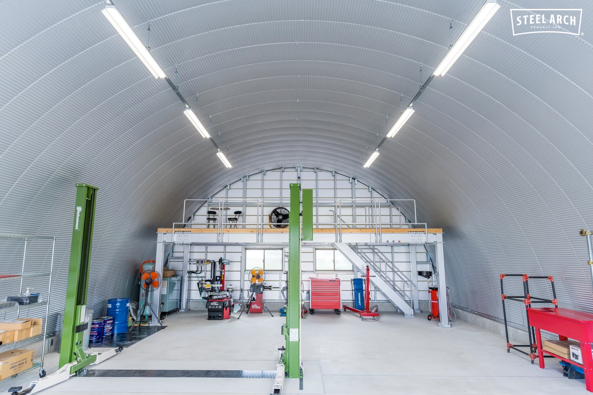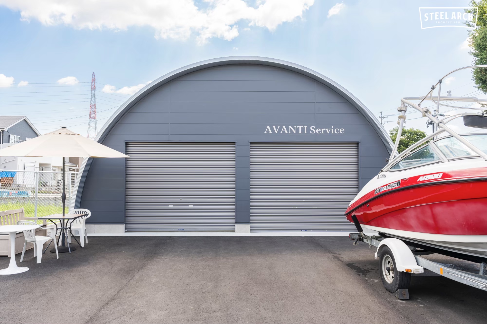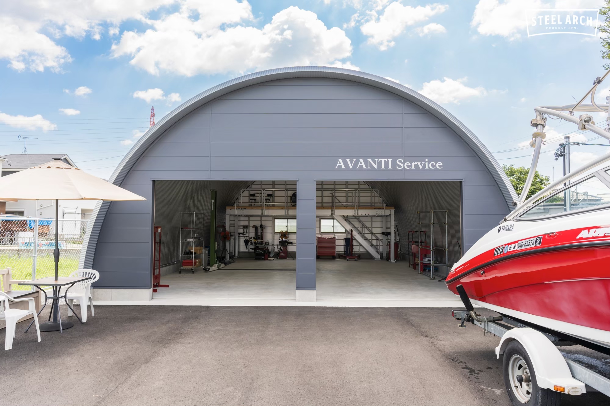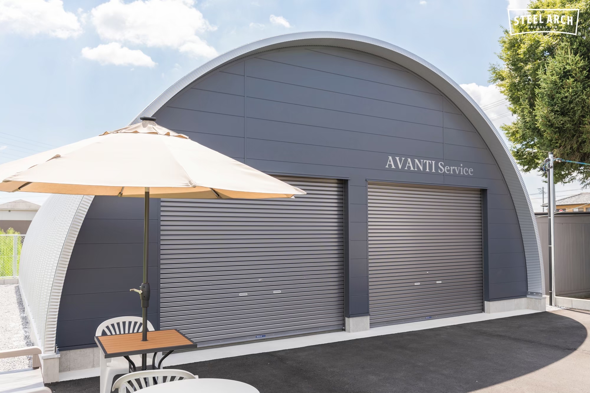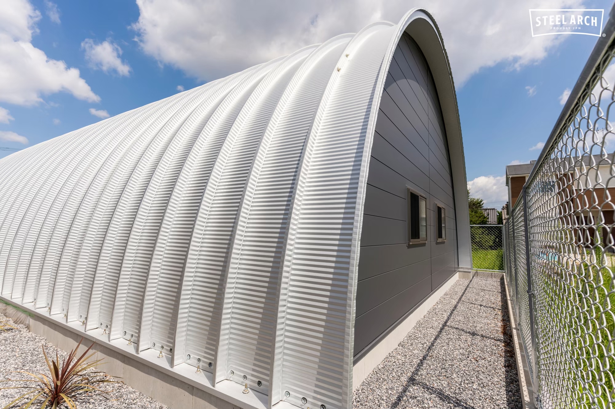 間口8.8m 奥行13.0m 高さ4.8m スチールアーチを施工しました。